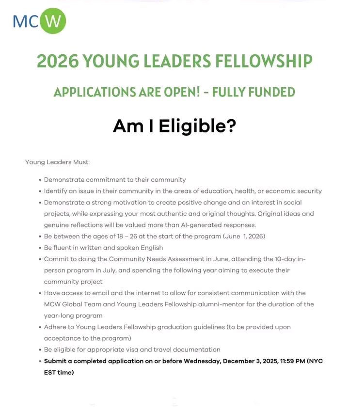 Details: https://mcwglobal.org/young-leaders-fellowship-2026/?nocache=1