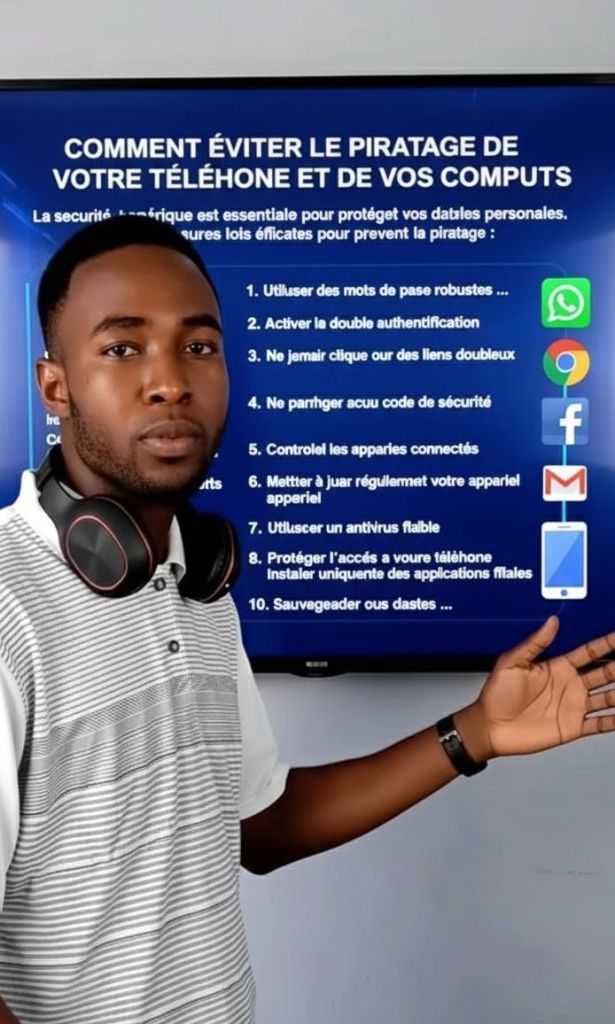 Vérifiez régulièrement les appareils connectés à vos comptes (Facebook, Gmail, WhatsApp). Supprimez immédiatement tout appareil inconnu et changez votre mot de passe.