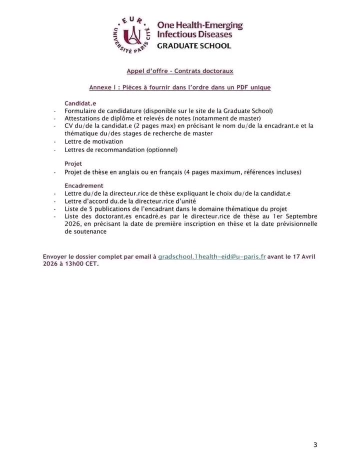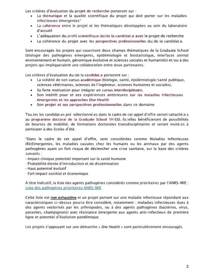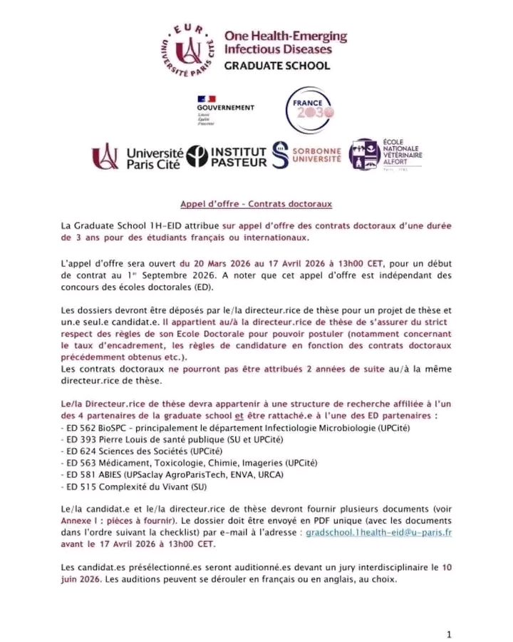 La Graduate School One Health – Emerging Infectious Diseases (1H-EID) lance son appel d’offres pour des contrats doctoraux à destination d’étudiant·e·s français·es et internationaux·ales.