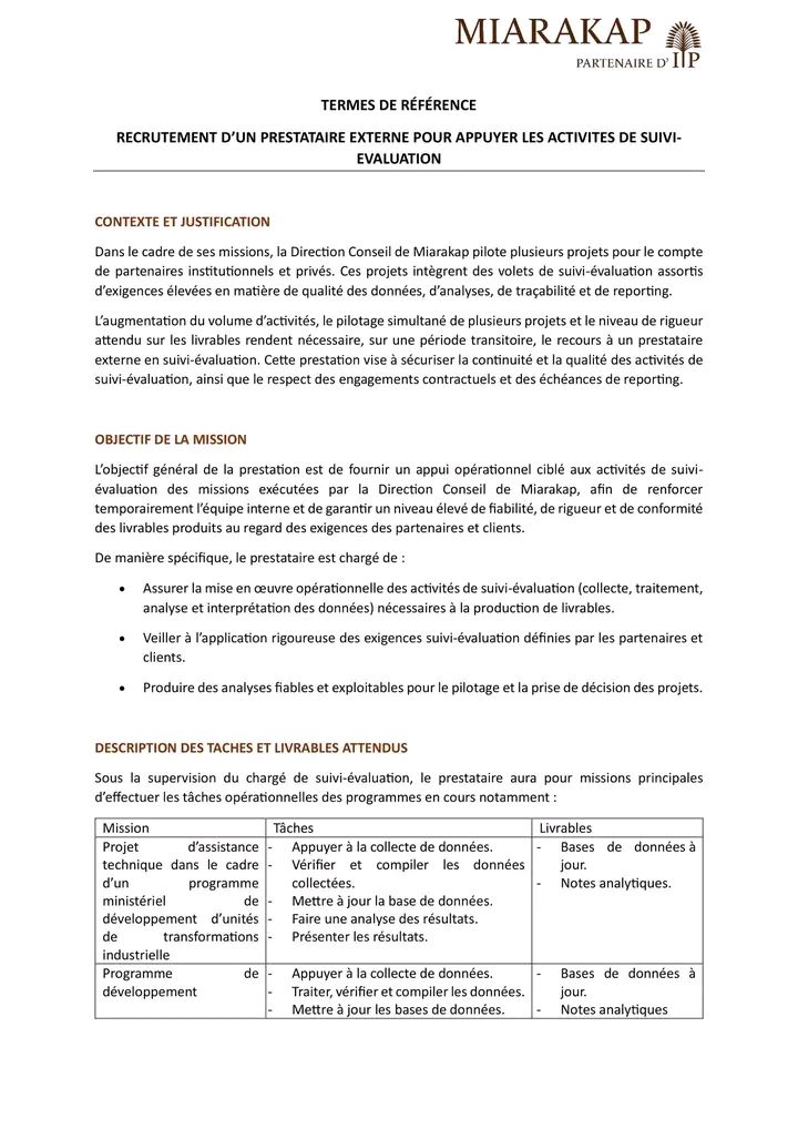 Vous avez une expertise confirmĂ©e en suivi-Ă©valuation de projets ou programmes, notamment en collecte, vĂ©rification et traitement de donnĂ©es, ainsi quâen gestion de bases de donnĂ©es ? Vous justifiez de 3 Ă 5 ans dâexpĂ©rience concrĂšte en mise en Ćuvre opĂ©rationnelle du suivi-Ă©valuation (au-delĂ de la conception) ? Vous connaissez bien le contexte des projets de dĂ©veloppement â dont le contexte local serait un vĂ©ritable atout ?